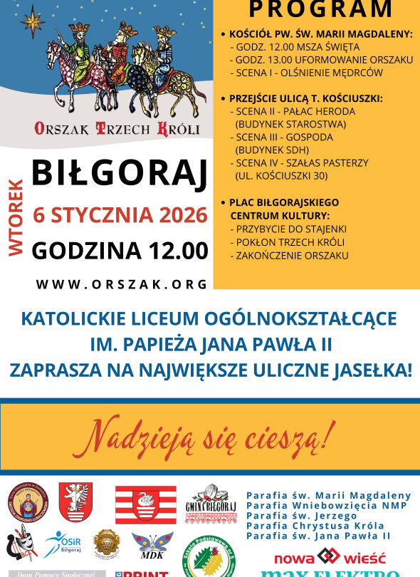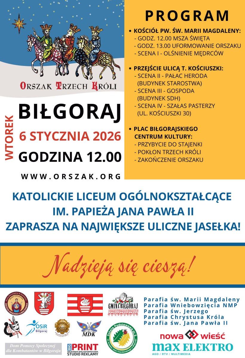6 stycznia 2025 roku, orszak Trzech Króli w Biłgoraju. Godzina 12:00.