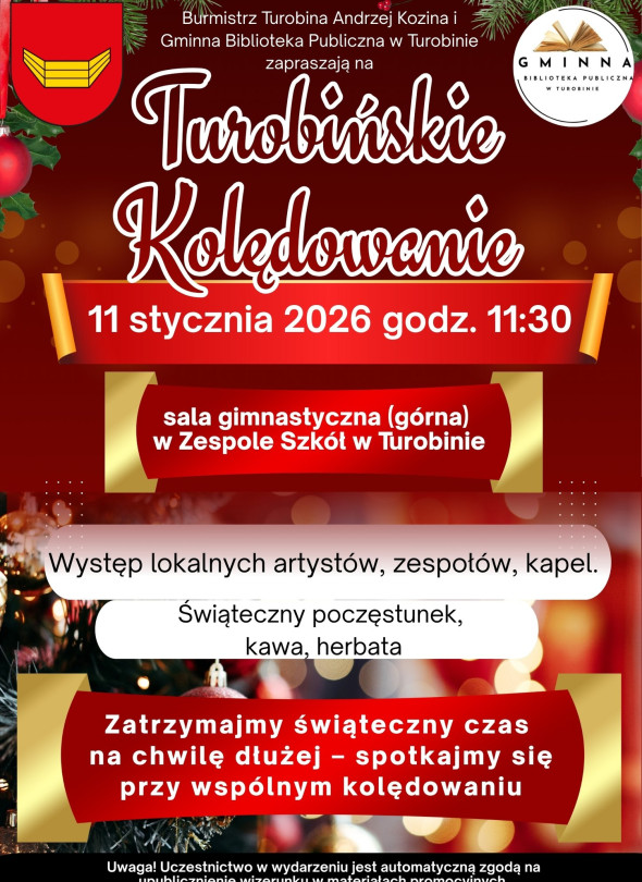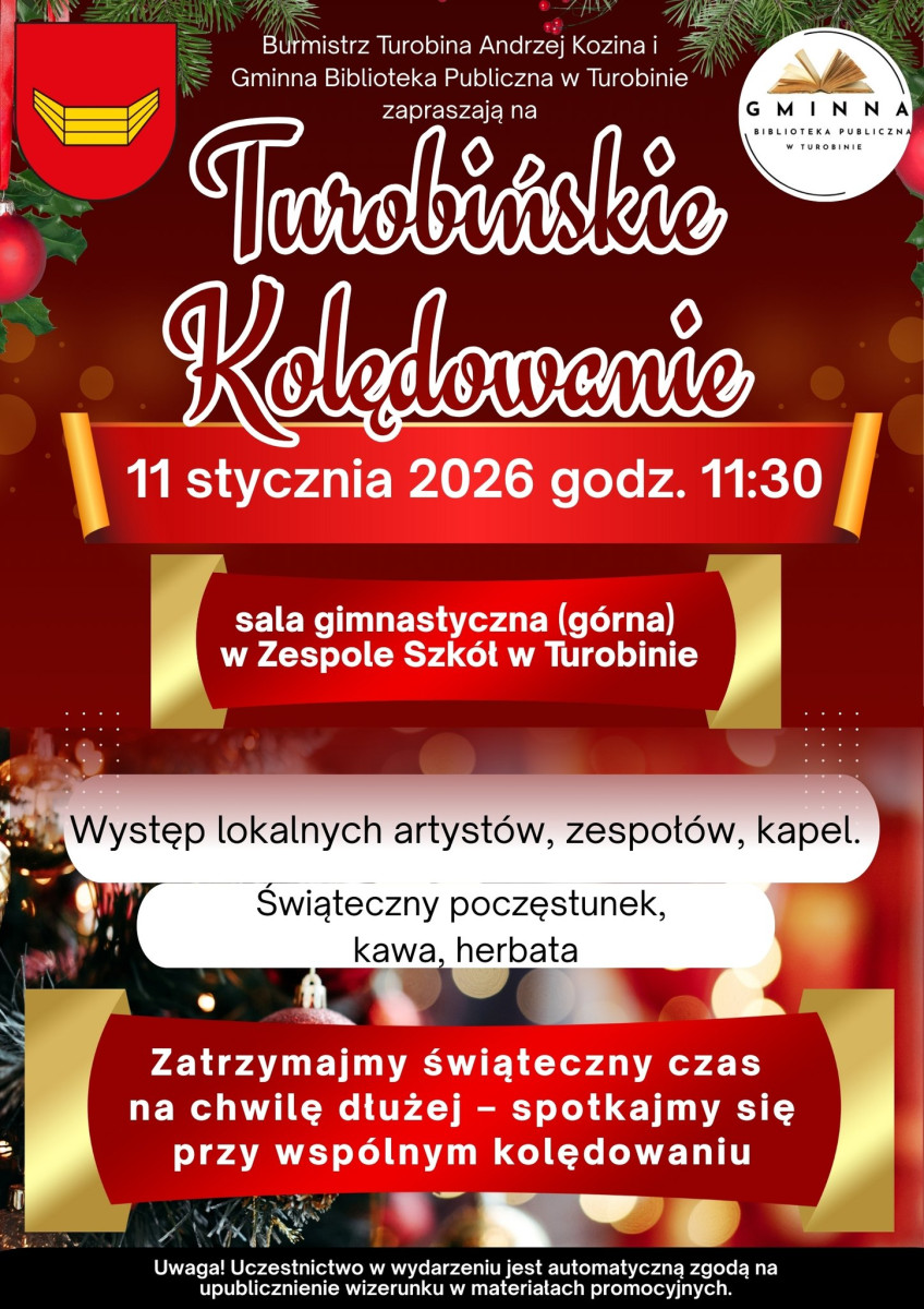 11 stycznia 2026 roku, w Turobinie odbędzie się wspólne kolędowanie Koncert w sali gimnastycznej Zespołu Szkół rozpocznie się o godzinie 11:30.