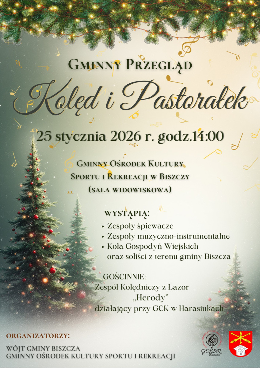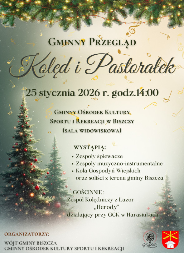 25 stycznia 2026 roku w Biszczy odbędzie się wspólne kolędowanie. Wydarzenie rozpocznie się o godzinie 14:00 w Gminnym Ośrodku Sportu i Rekreacji.