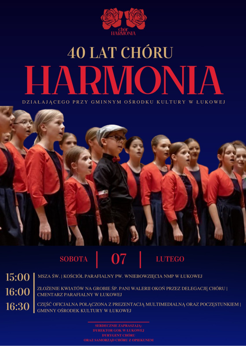 7 lutego 2026 roku odbędzie się jubileusz 40-lecia działalności Chóru "Harmonia". Początek wydarzenia o godzinie 15:00 w kościele parafialnym w Łukowej.