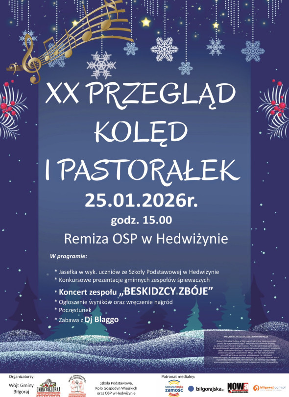 25 stycznia 2026 roku, w Hedwiżynie odbędzie się XX Przegląd Kolęd i Pastorałek. Początek o godzinie 15:00.