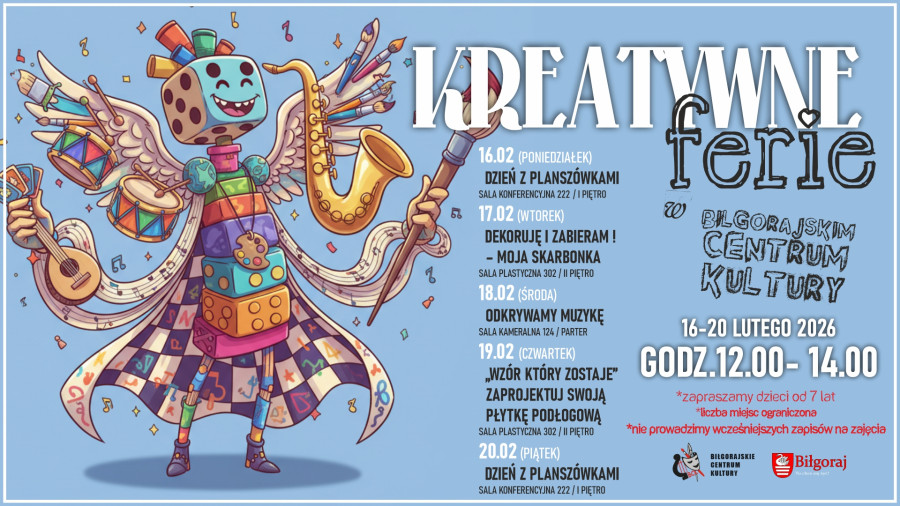 Biłgorajskie Centrum Kultury zaprasza dzieci na Kreatywne Ferie 2026 – pięć dni pełnych twórczej zabawy, odkrywania pasji i aktywnego spędzania zimowej przerwy w mieście.