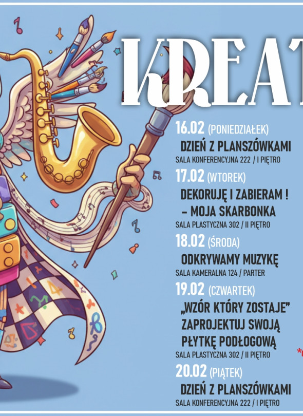 Zajęcia odbędą się od 16 do 20 lutego 2026 roku, w godzinach 12.00 - 14.00, w BCK.
