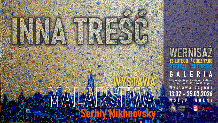 Już 13 lutego o godz. 18.00 w galerii Biłgorajskiego Centrum Kultury odbędzie się wernisaż wystawy malarstwa „Inna treść”. Autorem wystawy jest ukraiński artysta Serhyy Mikhnovskyy.