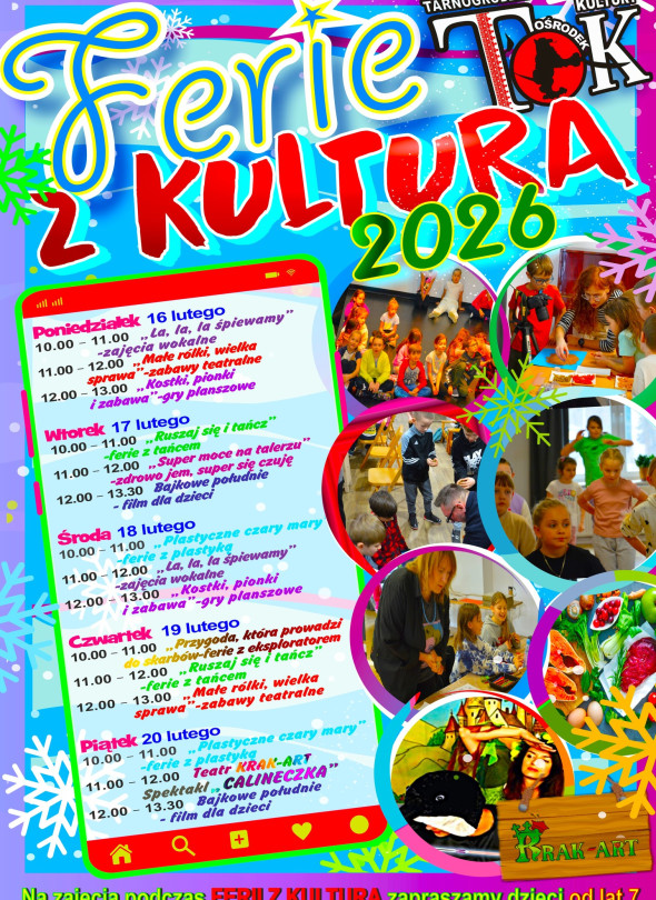10.00 – 11.00  „Plastyczne czary mary” - ferie z plastyką. Zajęcia poprowadzi Magdalena Grabińska-Serek
