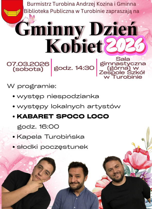 Gminny Dzień Kobiet w Turobinie odbędzie się 7 marca 2026 roku, w sali gimnastycznej Zespołu Szkół w Turobinie. Początek o godzinie 14:30.