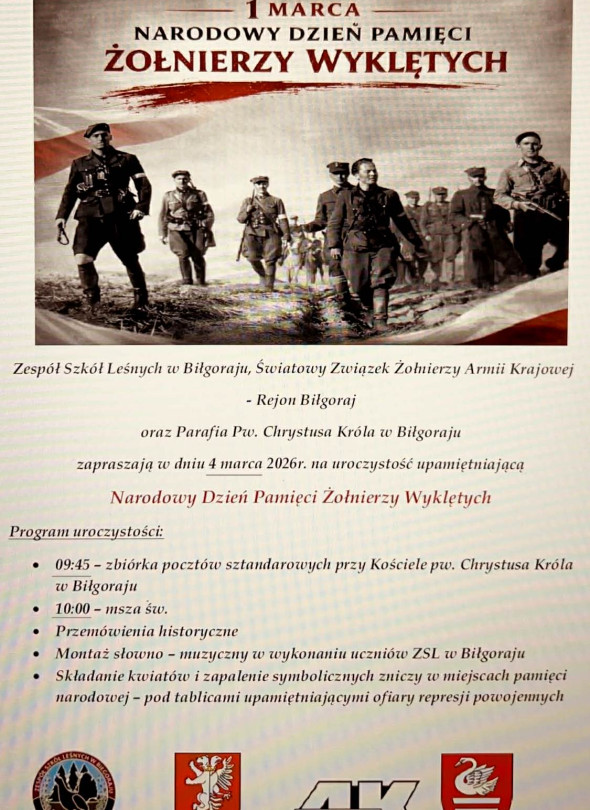 Uroczystości ku czci Żołnierzy Wyklętych. Biłgoraj 4 marca 2026 roku, godzina 10:00.