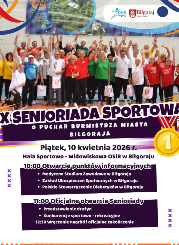 W piątek, 10 kwietnia 2026 roku, obiekty Ośrodka Sportu i Rekreacji w Biłgoraju wypełnią się energią, uśmiechem i duchem sportowej rywalizacji. Zapraszamy na 9. Senioriadę Sportową o Puchar Burmistrza Miasta Biłgoraja – wydarzenie, które udowadnia, że pasja do ruchu nie zna wieku!