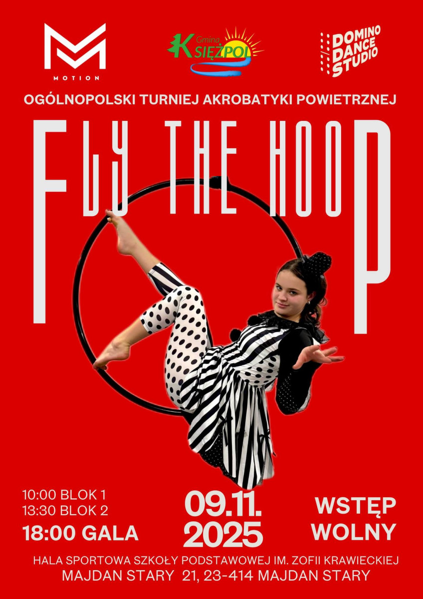 Już w najbliższą niedzielę, 9 listopada, w hali sportowej Szkoły Podstawowej im. Zofii Krawieckiej w Majdanie Starym, odbędzie się Ogólnopolski Turniej Akrobatyki Powietrznej Fly The Hoop. W turnieju weźmie udział ponad 100 uczestników z całej Polski! Widzowie będą mogli podziwiać niezwykłe występy na kole cyrkowym i chuście wertykalnej.