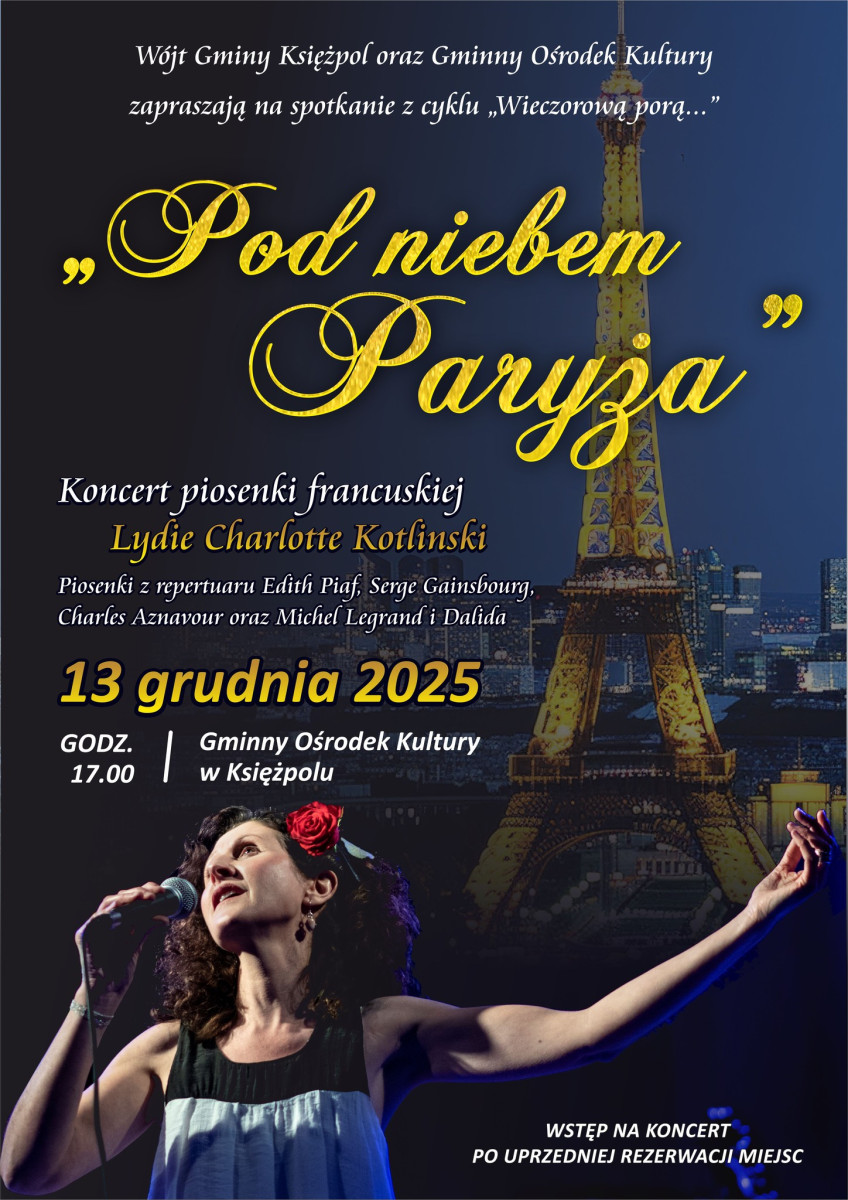 "Pod niebem Paryża" Koncert piosenki francuskiej. Lydie Charlotte Kotlinski
