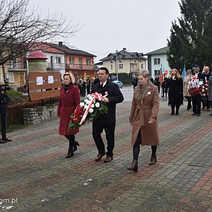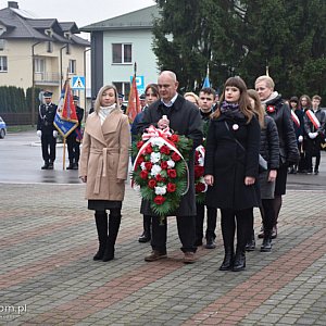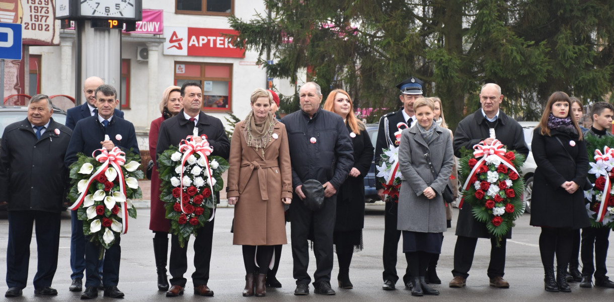 Pod pamiątkową tablicą złożono wieńce w hołdzie naszym lokalnym bohaterom. W tej szczególnie podniosłej uroczystości wzięło udział dużo osób, co jeszcze bardziej podniosło rangę obchodów Odzyskania Niepodległości.