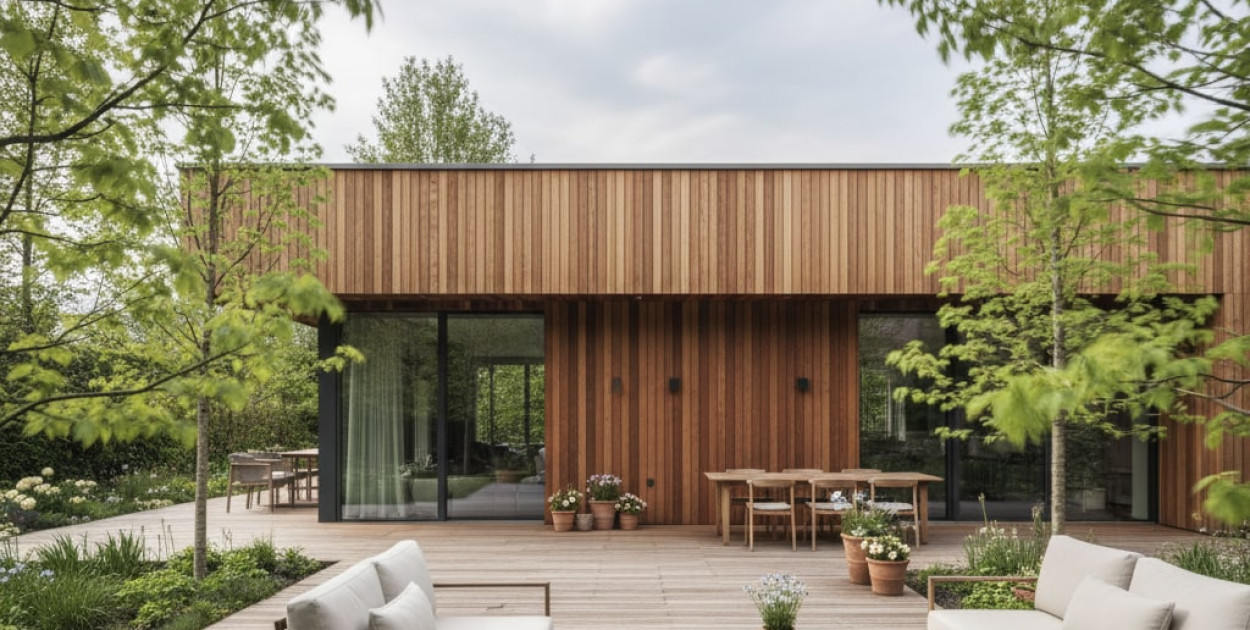 Dobrze zaprojektowany taras z drewna nie powinien wyglądać jak osobny element, tylko jak naturalne przedłużenie domu. Kolor drewna ma tu ogromne znaczenie, bo to taras łączy część mieszkalną z ogrodem.