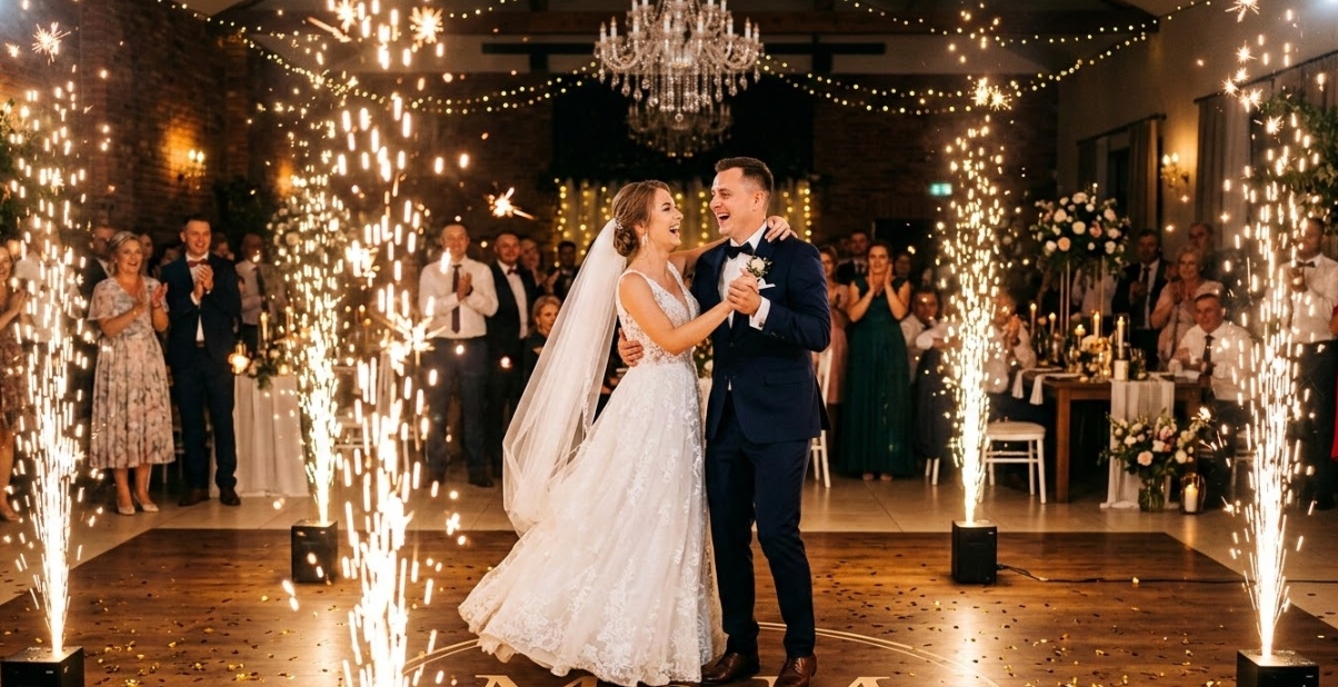 Co ważne – przy odpowiednim montażu i obsłudze są bezpieczne i mogą być stosowane zarówno w plenerze, jak i w wielu salach weselnych. To propozycja dla par, które chcą połączyć elegancję z efektem „wow” i stworzyć naprawdę niezapomniane widowisko dla swoich gości.