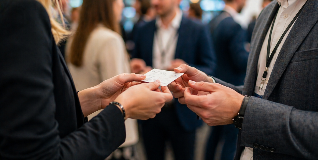 Wskazówka: Na odwrocie otrzymanej wizytówki warto dopisać krótką notatkę dotyczącą miejsca spotkania lub tematu rozmowy. Pomoże Ci to w późniejszym nawiązaniu kontaktu i pokaże Twojemu rozmówcy, że naprawdę słuchałeś tego, co miał do powiedzenia.