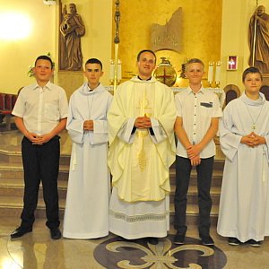Mszę świętą w intencji lektorów sprawował ks. prałat Józef Flis. Do posługi przystąpili chłopcy z z parafii w Soli, Radzięcinie, Gromadzie, Frampolu, Goraju, Tarnogrodzie, Dąbrowicy, Chmielku, Majdanie Starym, Hucie Krzeszowskiej oraz Biłgoraja z parafii św. Jerzego, Chrystusa Króla, Św. Jana Pawła II i św. Marii Magdaleny, którzy przez ostatni rok przygotowywali się do tego wydarzenia poprzez formację na kursie lektorskim. -Mam nadzieję, że macie świadomość, że przystępujecie do czegoś ważnego, co można w pewnym sensie określić powołaniem. Nosicie na ten znak białą albę, cingulum, ale przede wszystkim, służycie Panu Bogu poprzez odczytywanie Bożego Słowa. Wy teraz jesteście szczególnie do tego powołani, aby poprzez posługę lektora służyć Bogu, dlatego zachęcam was dzisiaj, abyście z wielkim zaangażowaniem, głębokim, otwartym sercem, nie tylko oddawali Panu Bogu swoje usta i swój głos, ale również swoje myśli, uczucia i codzienne postawy - mówił duszpasterz Liturgicznej Służby Ołtarza Diecezji Zamojsko - Lubaczowskiej ks. Mateusz Januszewski.
