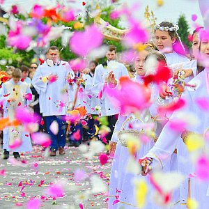 Ulicami naszych miast i wsi przechodzą dziś procesje Bożego Ciała. To element Uroczystości Najświętszego Ciała i Krwi Chrystusa, która przypada 60 dni po niedzieli Zmartwychwstania Pańskiego, w pierwszy czwartek po Uroczystości Trójcy Przenajświętszej. Wierni - z feretronami i chorągwiami - podążają za Najświętszym Sakramentem do czterech ołtarzy, gdzie odczytywane są fragmenty Ewangelii.