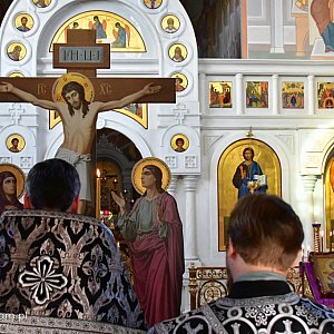 - Musimy pamiętać o tym, że w cerkwi liturgiczne dzień rozpoczyna się już od dnia poprzedniego wieczora. Dlatego też w Wielki Czwartek wieczorem spawana była w naszej świątyni jutrznia Wielkiego Piątku, podczas której czytanych było dwanaście fragmentów Ewangelii mówiących o męce i cierpieniach Jezusa Chrystusa. To nabożeństwo odbyło się przed sceną ukrzyżowania Chrystusa, która stoi na środku świątyni. Kapłan stoi na środku razem z wiernymi i odczytywanych jest tych 12 fragmentów Ewangelii - wyjaśnia proboszcz biłgorajskiej wspólnoty prawosławnej.