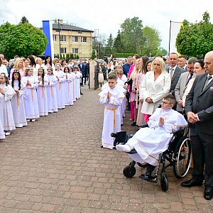 Na początku uroczystości, w progach świątyni dzieci, ich rodziców i najbliższych oraz wszystkich wiernych powitał ks. Krzysztof Jankowski, proboszcz parafii w Soli koło Biłgoraja.