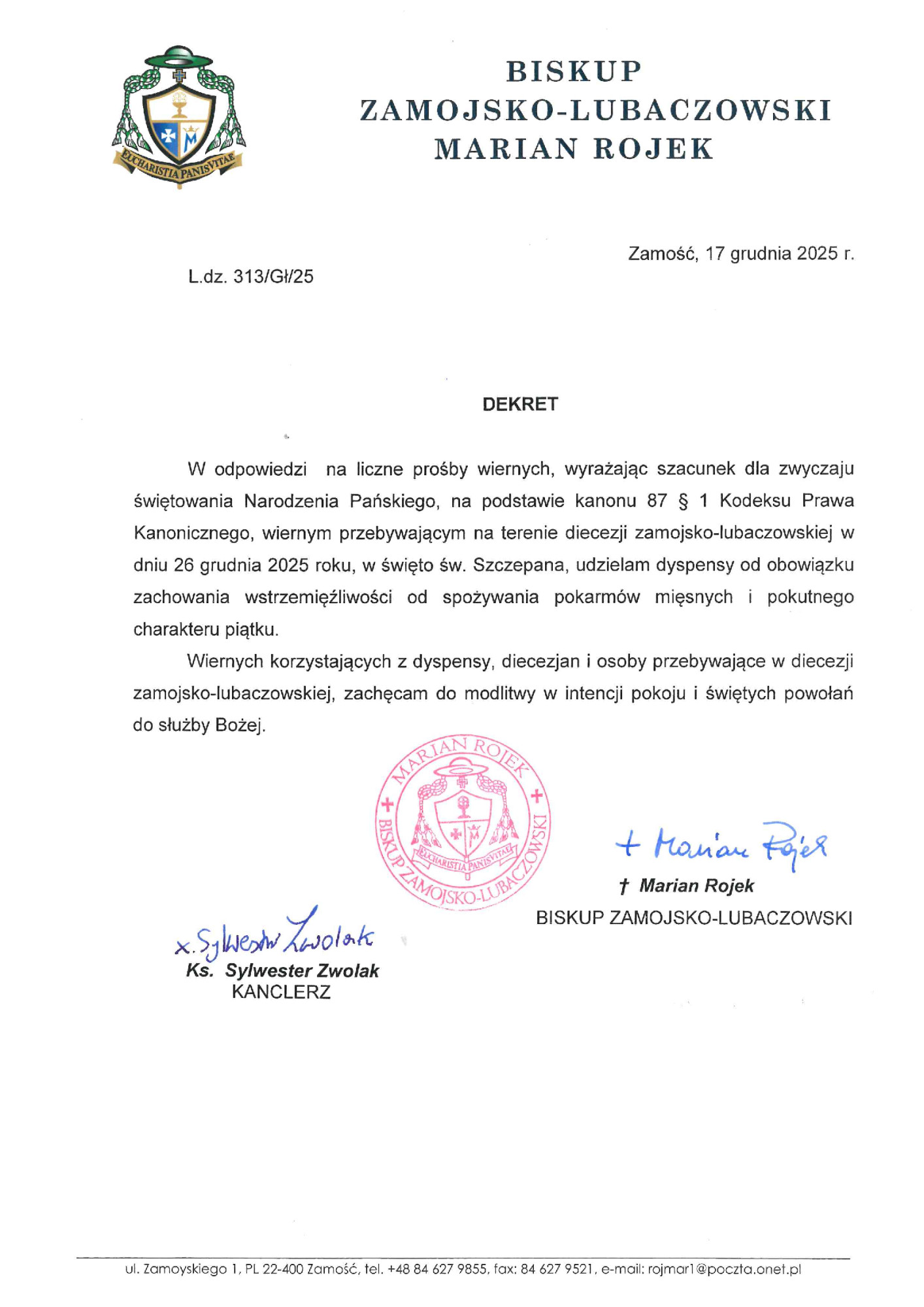 Udzielona przez Biskupa Diecezji Zamojsko-Lubaczowskiej dyspensa ma charakter terytorialny. Oznacza to, że mogą z niej skorzystać: