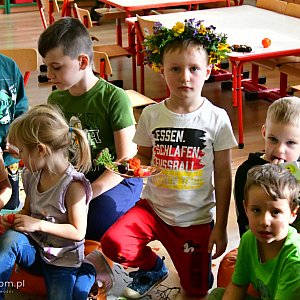 PO zakończonych warsztatach dzieci przygotowane - z pomocą dorosłych - wianki i stroiki zabrały do domu.