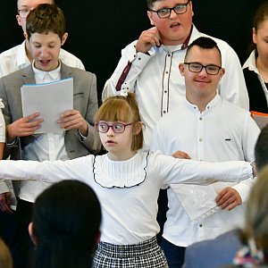 Uczniowie ZSS zaprezentowali specjalnie przygotowaną akademię słowno - muzyczną.