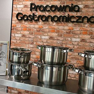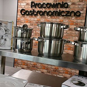 Chodzi o 4 sztuki stołów roboczych dla ucznia do sporządzania potraw (2 sztuki lewy i 2 sztuki prawy), stoły robocze dla ucznia do prezentacji potraw i napojów (4 szt.), stół roboczy dla uczniów do parzenia kawy czy stół roboczy dla uczniów do sporządzania napojów gorących i zimnych. Do tego wyposażenie pracowni wzbogaciło się o komplety garnków (8 kompletów) czy zestaw patelni. Ponadto zakupione zostały serwis obiadowo - kawowy, serwis kawowy, ekspres do kawy ciśnieniowy z młynkiem czy schładzarko - zamrażarka szokowa.