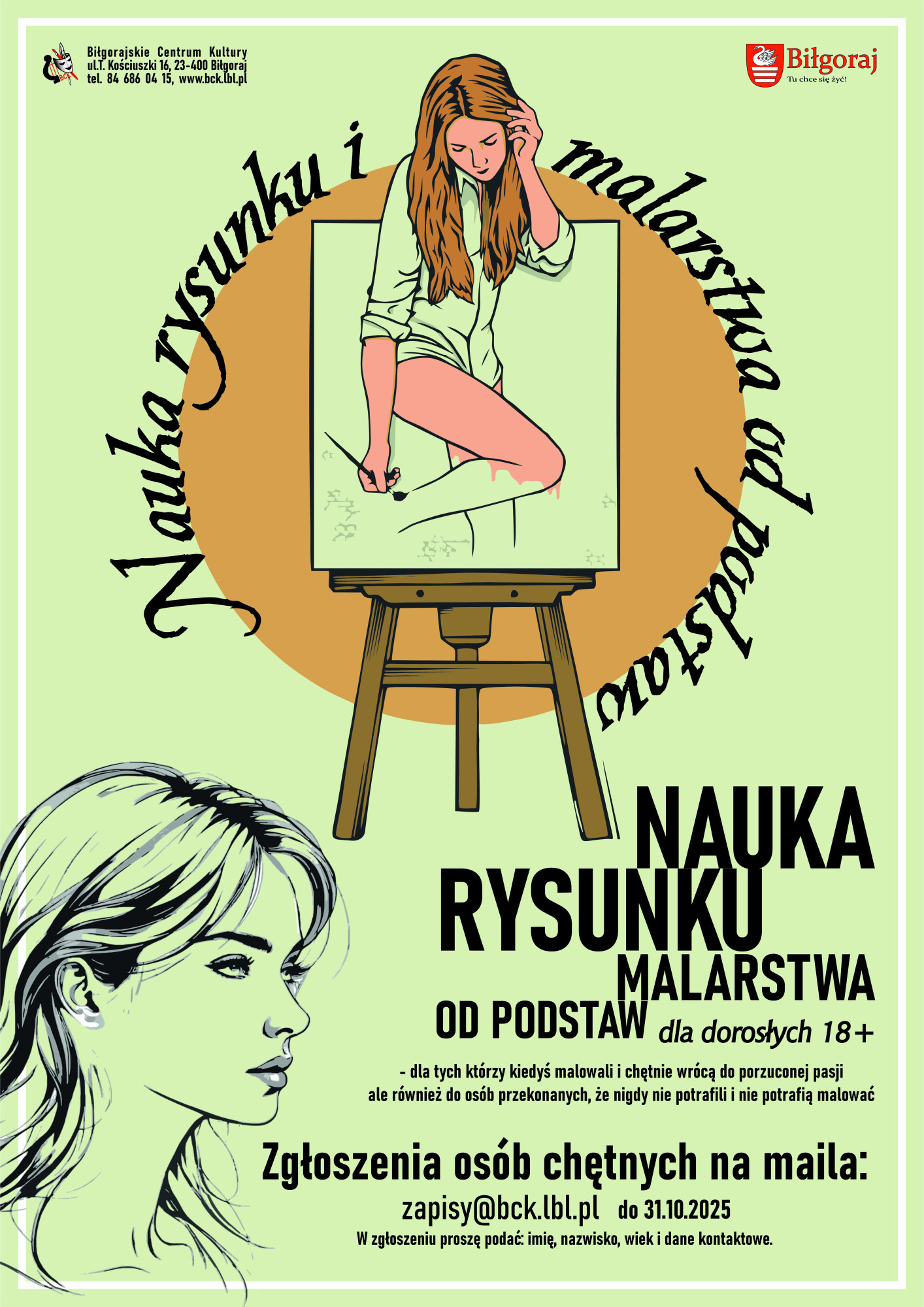 Biłgorajskie Centrum Kultury (BCK) wychodzi naprzeciw potrzebom mieszkańców, którzy pragną rozpocząć lub wznowić swoją przygodę ze sztuką. Ruszyły zapisy na zajęcia "Nauka rysunku i malarstwa od podstaw", skierowane wyłącznie do osób dorosłych.