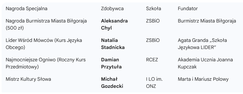 Sukcesy uczniów zostały nagrodzone dzięki hojności sponsorów, którzy docenili wysiłek i talent młodzieży:
