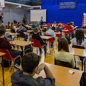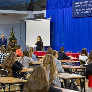 W czasie oczekiwania na wyniki młodzież uczestniczyła w spotkaniu z Andrzejem Czacharowskim - regionalistą, krajoznawcą i wiceprezesem Oddziału PTTK w Biłgoraju, który poprowadził grę edukacyjną „Świątynie Ziemi Biłgorajskiej”. Dzięki temu uczniowie mogli poszerzyć swoją wiedzę i poznać nowe, ciekawe fakty o regionie. Podczas drugiego etapu konkursu rywalizowali najlepsi. Ich zadaniem było rozpoznawanie miejsc pamięci narodowej Powiatu Biłgorajskiego na fotografiach. Konkurencja ta sprawdzała nie tylko wiedzę faktograficzną, ale również orientację w lokalnej przestrzeni historycznej i kulturowej.