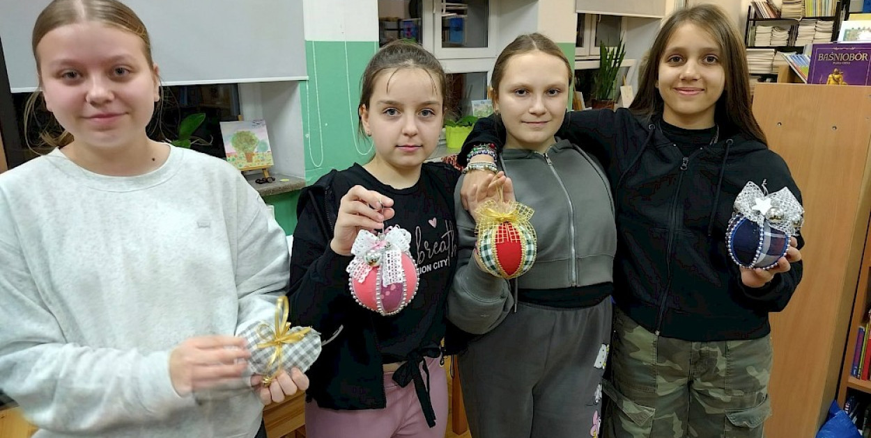 Podczas zajęć wolontariusze stworzyli bogato zdobione bombki, oklejane kolorowymi tkaninami i dopracowane w najdrobniejszych szczegółach, a także ręcznie szyte serduszka, ozdobione kokardkami i dzwoneczkami. Każda z prac była niepowtarzalna i niosła ze sobą wyjątkowy, świąteczny klimat.