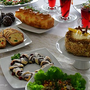 - Słodkości: tradycyjny keks, makowiec i sernik z żurawiną, obok których pojawiła się nowość -– piernik orzechowo-marchewkowy.
