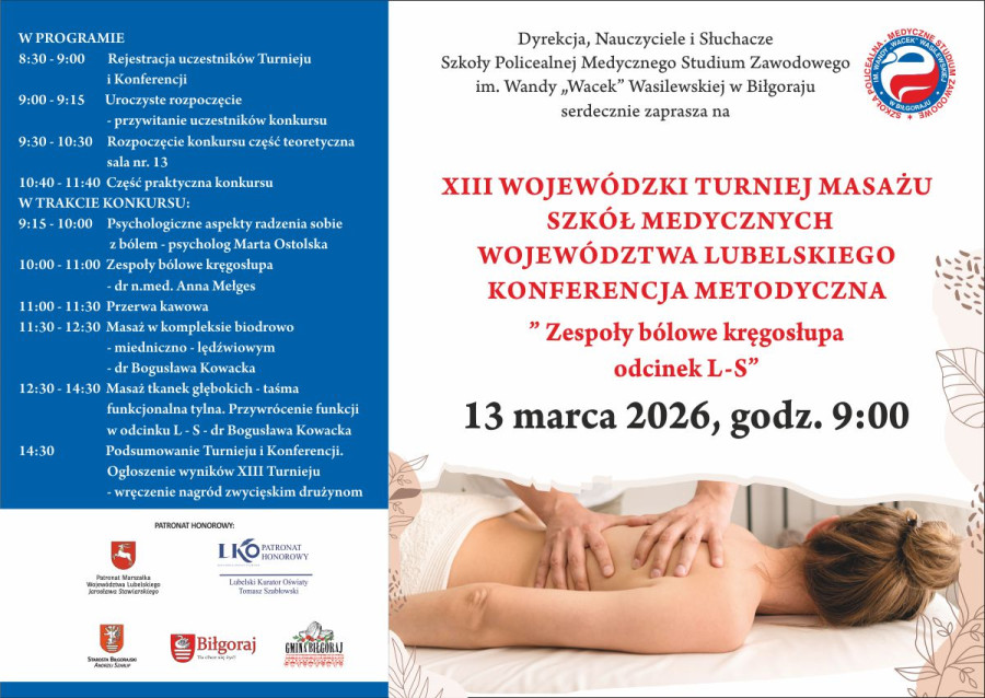 Szkoła Policealna – Medyczne Studium Zawodowe w Biłgoraju po raz drugi z rzędu stała się areną zmagań najlepszych słuchaczy kierunków medycznych z całego województwa. XIII Wojewódzki Turniej Masażu Szkół Medycznych Województwa Lubelskiego to wydarzenie, które łączy sportową rywalizację z wysokospecjalistyczną wiedzą medyczną.