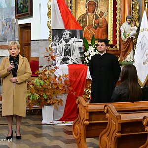 Dzisiejszej Mszy świętej przewodniczył ks. Roman Sawic, proboszcz parafii św. Jerzego w Biłgoraju. Po Eucharystii, młodzież z I LO im. ONZ zaprezentowała montaż słowno - muzyczny, po którym uczestnicy złożyli kwiaty i zapalili znicze po tablicą poświęcono ks. Popiełuszce.