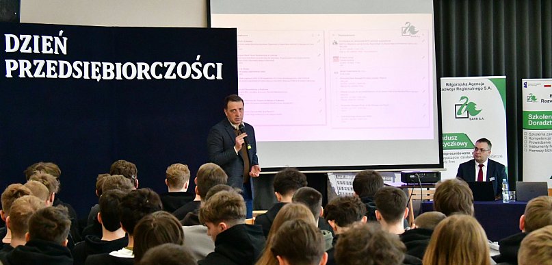 Gdzie szukać wsparcia na start i jak uniknąć błędów początkującego przedsiębiorcy? 11 lutego 2026 roku uczniowie klas maturalnych Regionalnego Centrum Edukacji Zawodowej w Biłgoraju szukali odpowiedzi na te pytania podczas drugiej edycji Dnia Przedsiębiorczości.